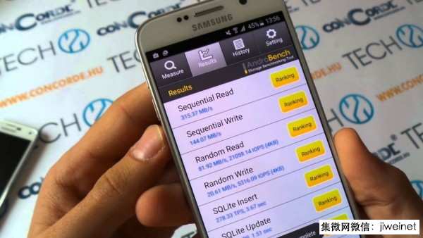 在此前的測(cè)試中我們已經(jīng)見識(shí)過 UFS 2.0 存儲(chǔ)技術(shù)的厲害,使用了 UFS 2.0 存儲(chǔ)技術(shù)的三星 Galaxy S6 以及 Galaxy S6 Edge 的存儲(chǔ)性能在各項(xiàng)測(cè)試中都完勝其他測(cè)試對(duì)手。UFS 存儲(chǔ)技術(shù)堪稱是當(dāng)今高端移動(dòng)設(shè)備佳的內(nèi)存存儲(chǔ)解決方案,UFS內(nèi)存采用“命令隊(duì)列(Command Queue)”技術(shù),該技術(shù)常用于固態(tài)硬盤(SSD)中,通過串行接口加快命令執(zhí)行速度,與采用 8 位并行接口的eMMC標(biāo)準(zhǔn)相比,數(shù)據(jù)處理速度得到大幅提高。因此,三星此次推出存儲(chǔ)讀取速度達(dá)到 19000 IOPS,是高端智能手機(jī)中常用的 eMMC 5.0 嵌入式內(nèi)存(7000 IOPS)的 2.7 倍,普通高速內(nèi)存卡(1500 IOPS)的 12 倍,其超快的處理速度將大大提升系統(tǒng)性能。此外,新產(chǎn)品的連續(xù)讀寫性能也提升到了 SSD 水平,而功耗則降低了 50%。