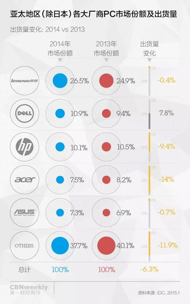 看上去,戴爾正在用比聯想更“聯想”的方式獲取自己在這個衰落市場的生存空間。通過細致的經銷商管理獲得基層客戶,這也是其他IT公司還沒做到的。2012年起,戴爾與神州數碼、英邁和聯強際簽訂商用產品分銷協議。這些公司均為戴爾在PC業務中的主要經銷商。